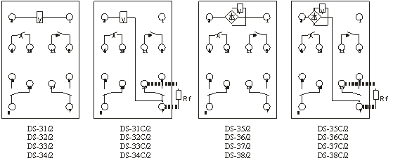 注:端子3、11为滑动触点,端子4、12为终止触点;不带滑动触点的继电器。其内部接线同上。