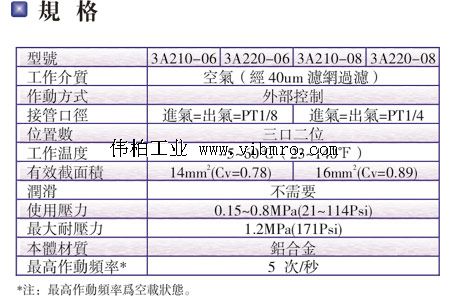 3A220-08,AIRTAC气动阀,3A200系列气动阀(三口二位)